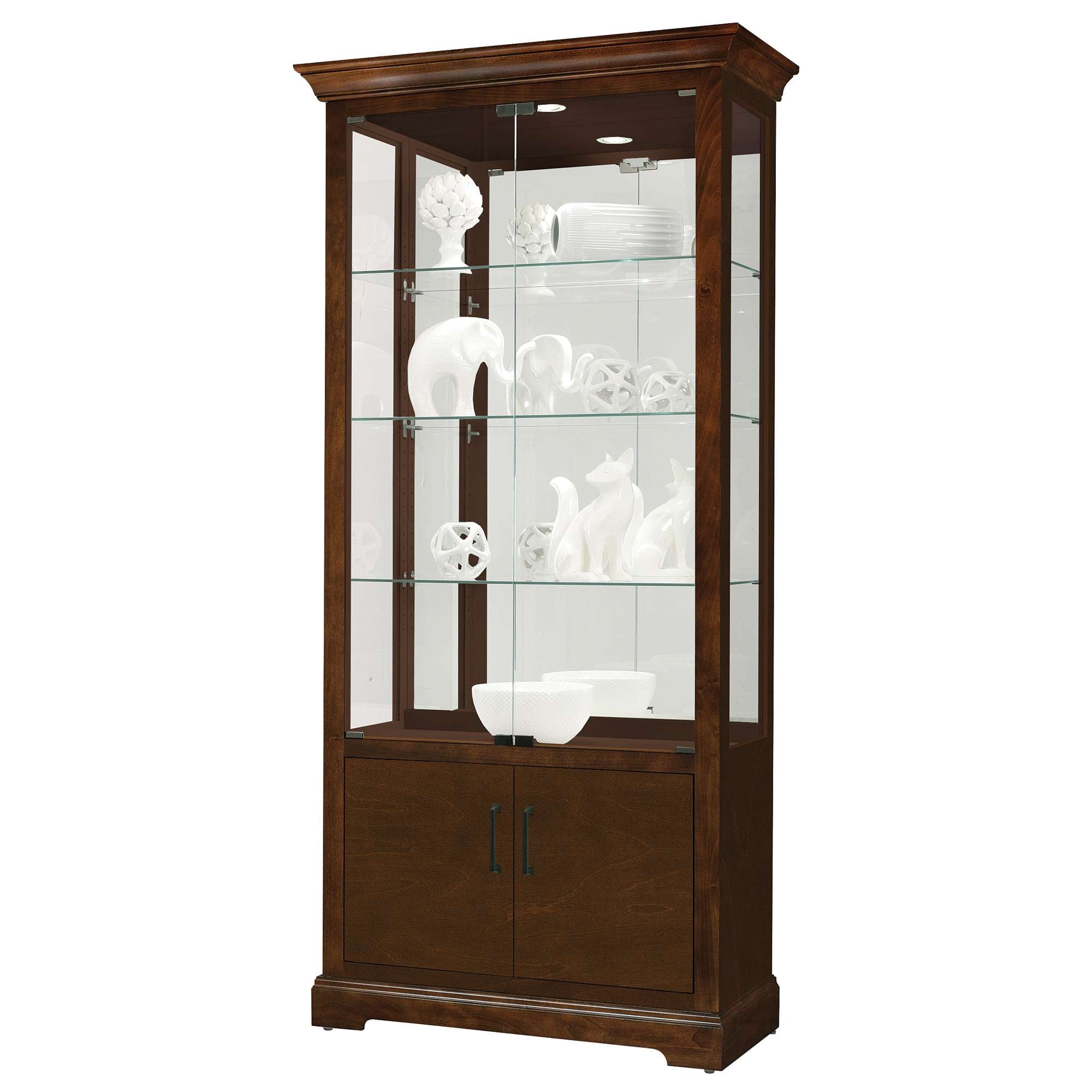 - Three adjustable glass shelves provide for four levels of display. Continuous holes for maximum shelf adjustment.