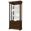 - This flat-top pediment curio features hinged glass doors with antique black finished hinges and pulls.