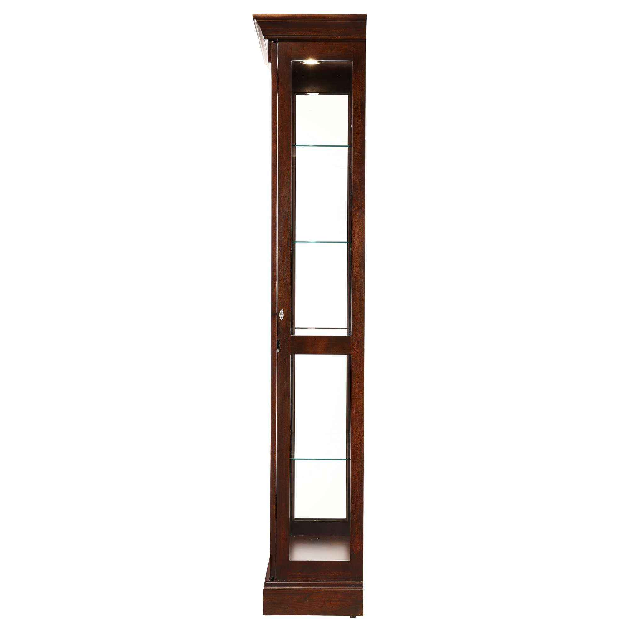 The interior cabinet lighting provides brighter, whiter, longer-lasting light to illuminate your collectibles, with a No Reach™ roller on/off light switch located on the back.