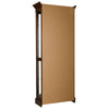 - The front door features decorative molding and slides in both directions for convenient access to the shelves.