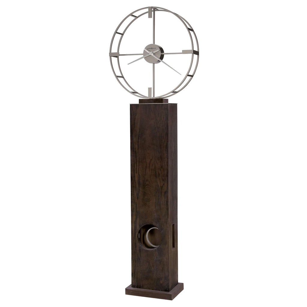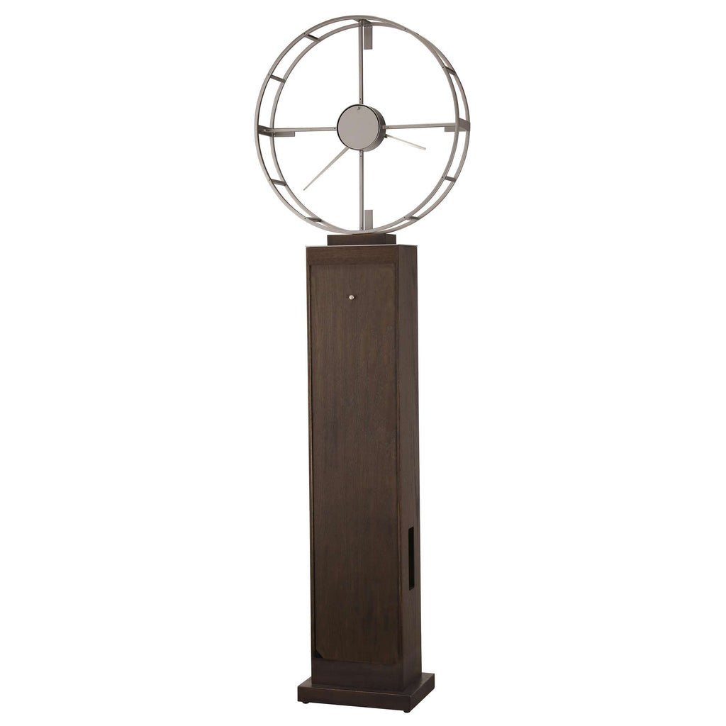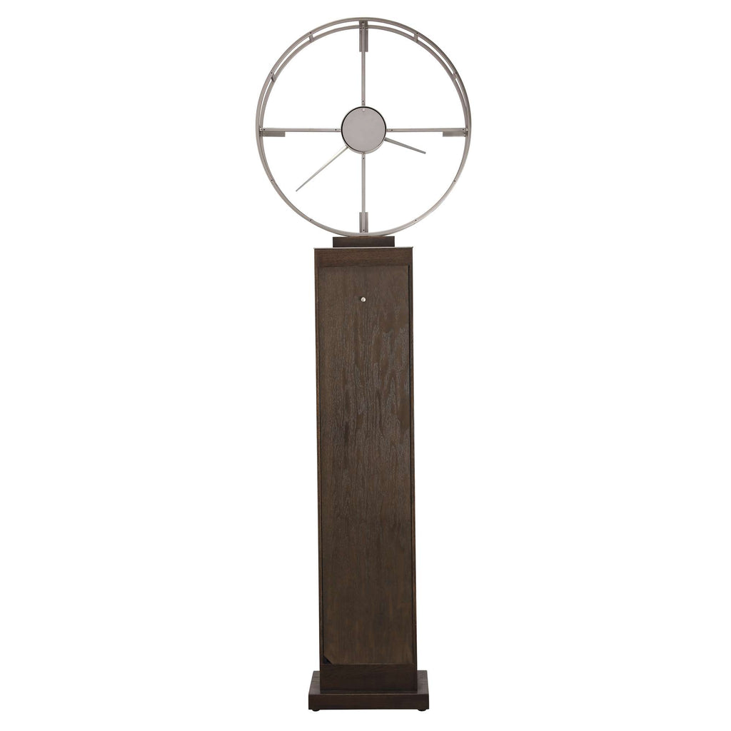 Stunning Dial Features: The dark Juno grandfather clock features a large 24-inch diameter metal dial with suspended hour markers and hour and minute hands finished in satin nickel. Satin nickel-finished pendulum with a circular ring for the bob complements the dial, resulting in a unique design.