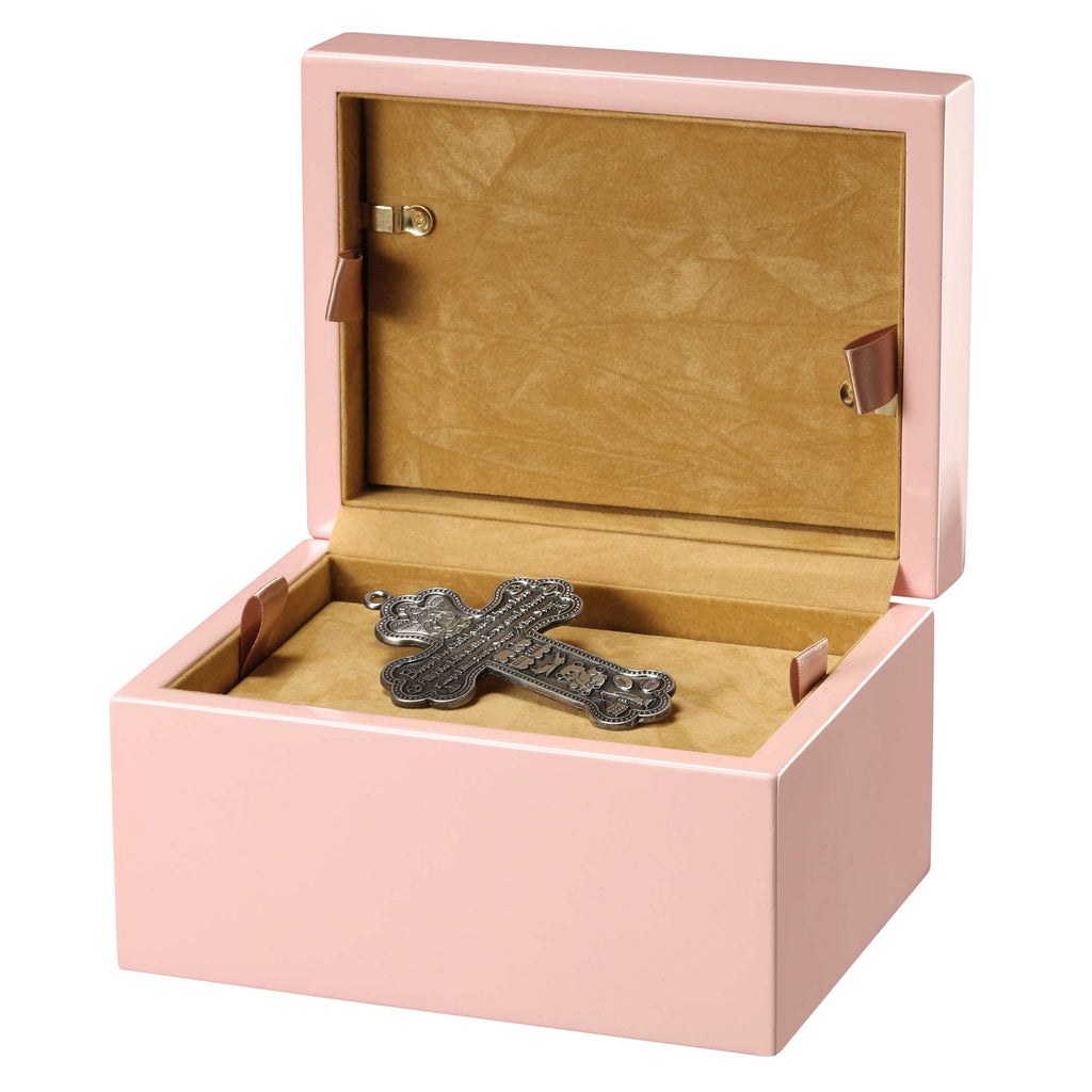 • Includes a full, crushed velvet-lined interior and a velvet-covered lift-out tray that holds memorable keepsakes.