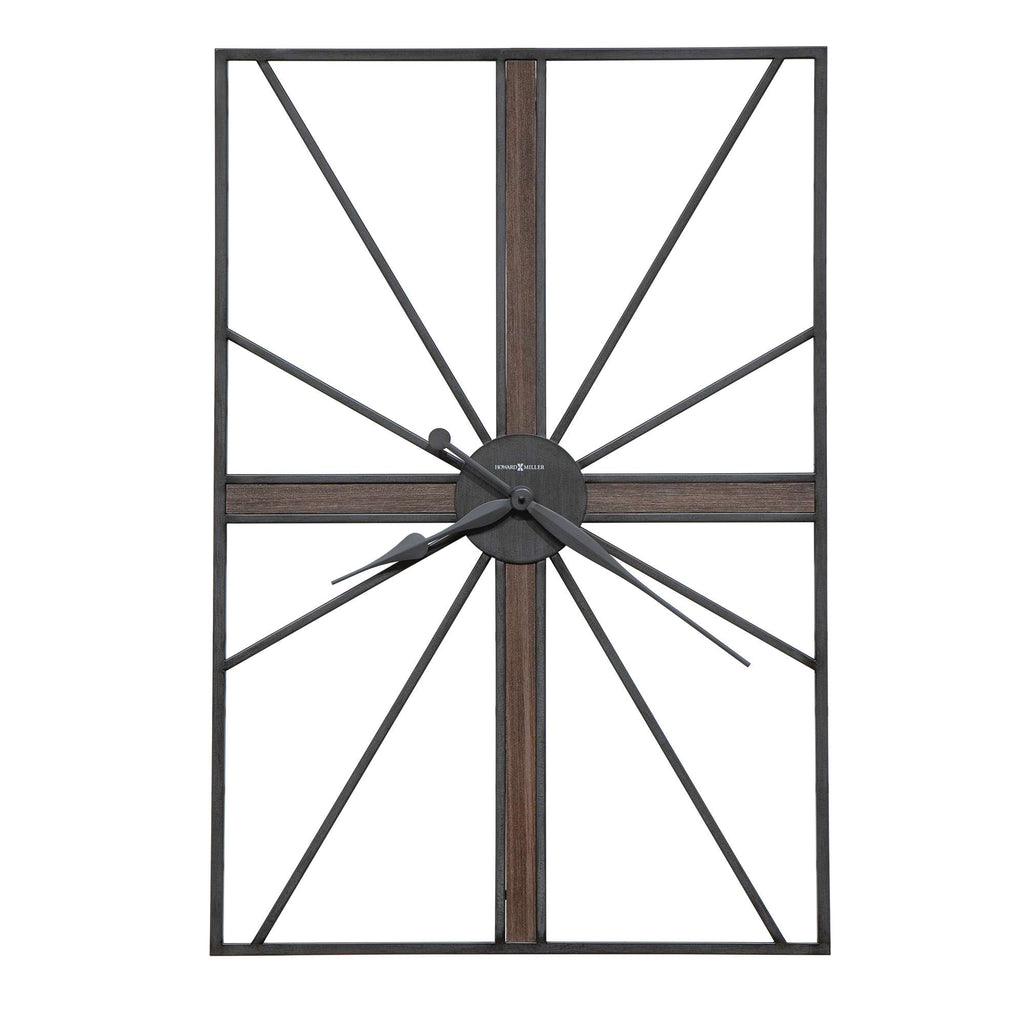 Sleek Sophistication: Its rectangular silhouette alone helps this dramatic iron wall clock stand out. It features complementary hour markers designed to replicate slender iron bars. Each is finished in aged charcoal for a sophisticated appearance, while wood veneered inserts bearing an aged brown, wire-brushed finish add a touch of contrast to the design. Each insert marks the 12, 3, 6, and 9 positions.