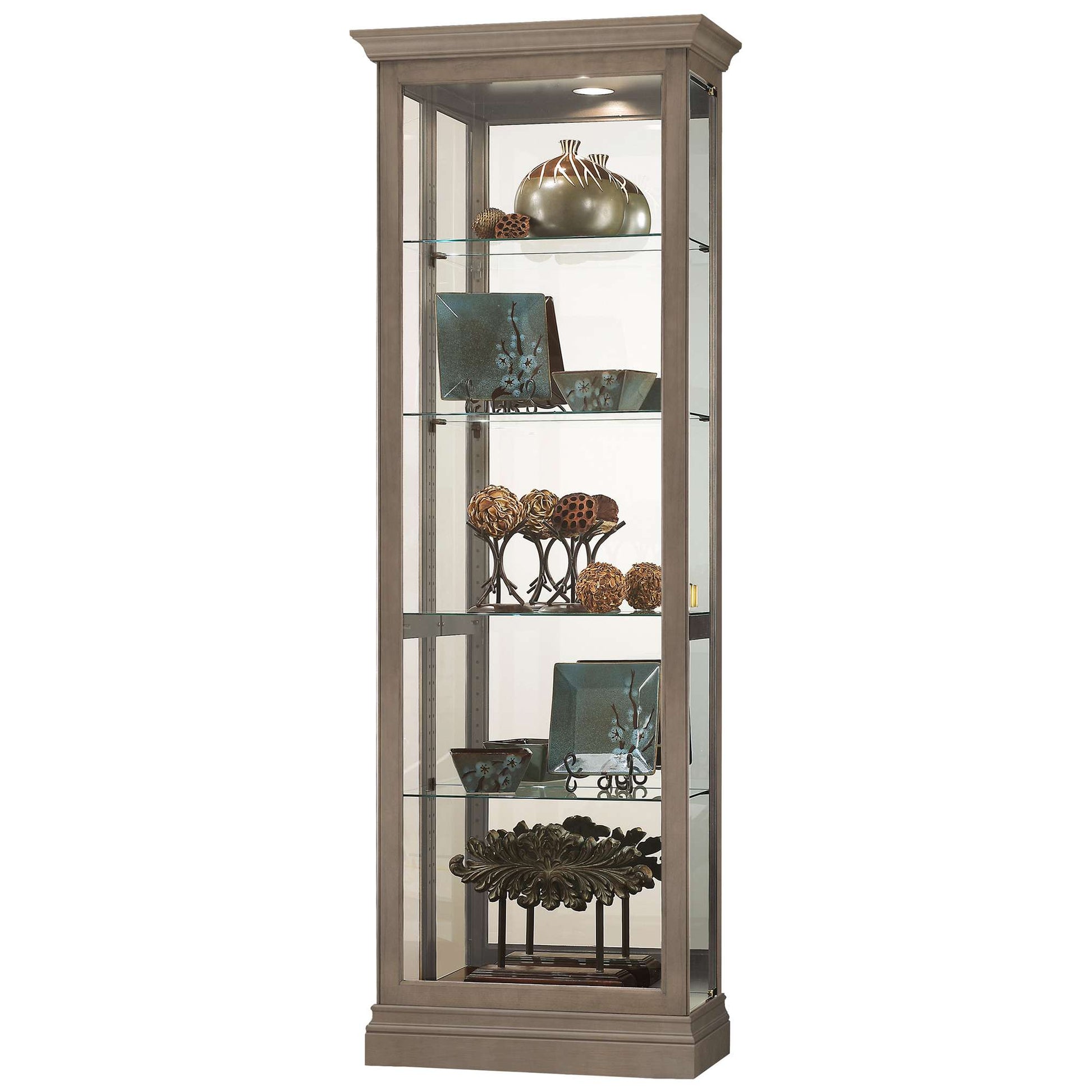Detailed Design: Howard Miller left no detail overlooked in the design of this lighted curio cabinet. The side opening door provides easy access to collectibles, while a glass mirrored back enhances the view of items on display.