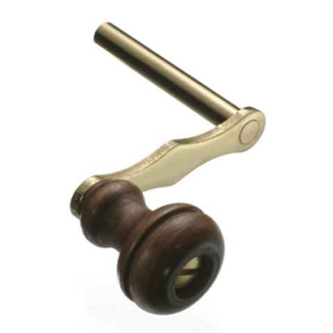 - Wood handled, plain brass, winding crank used to wind floor clocks.