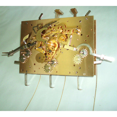 • Eight day Westminster chime movement, pendulum type, auto night shut off (10:00pm to 7:15am), Anchor bridge 50mm, Cable stop length when fully wound is 79cm. Kieninger part MS 116cm.