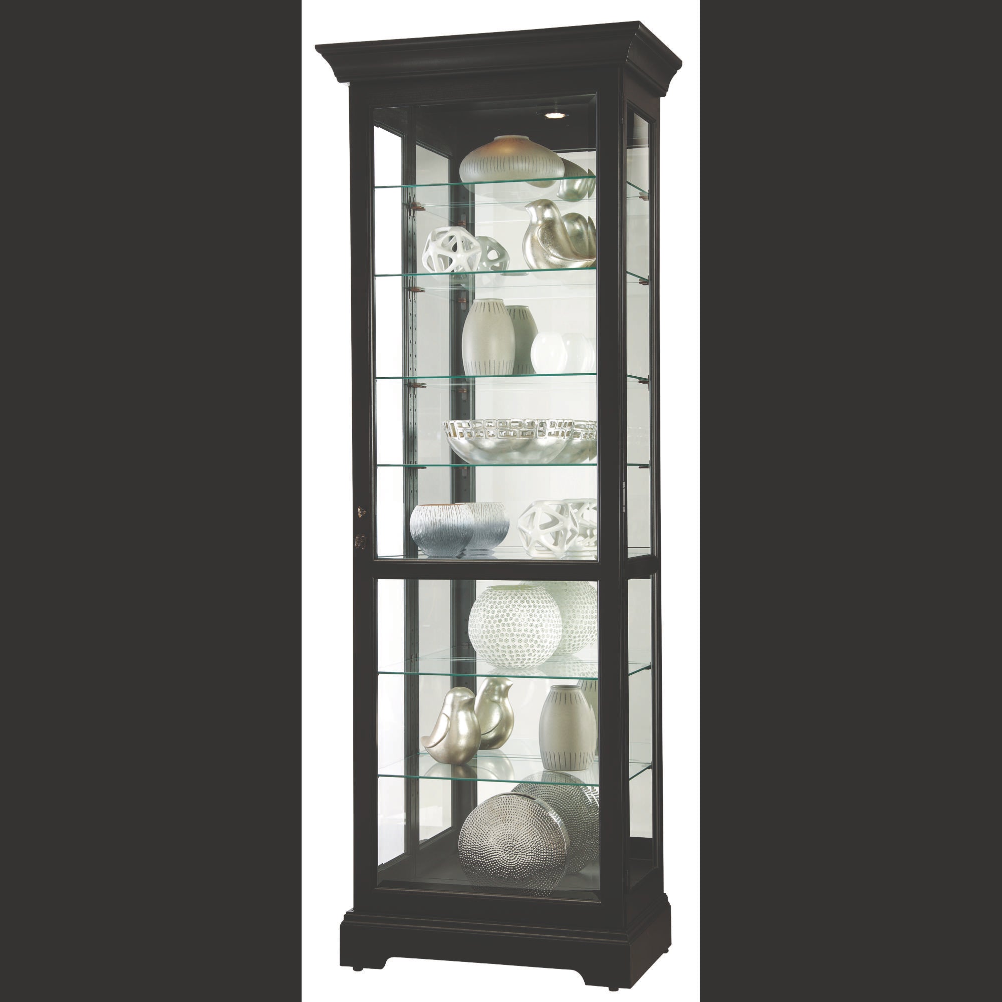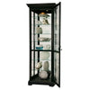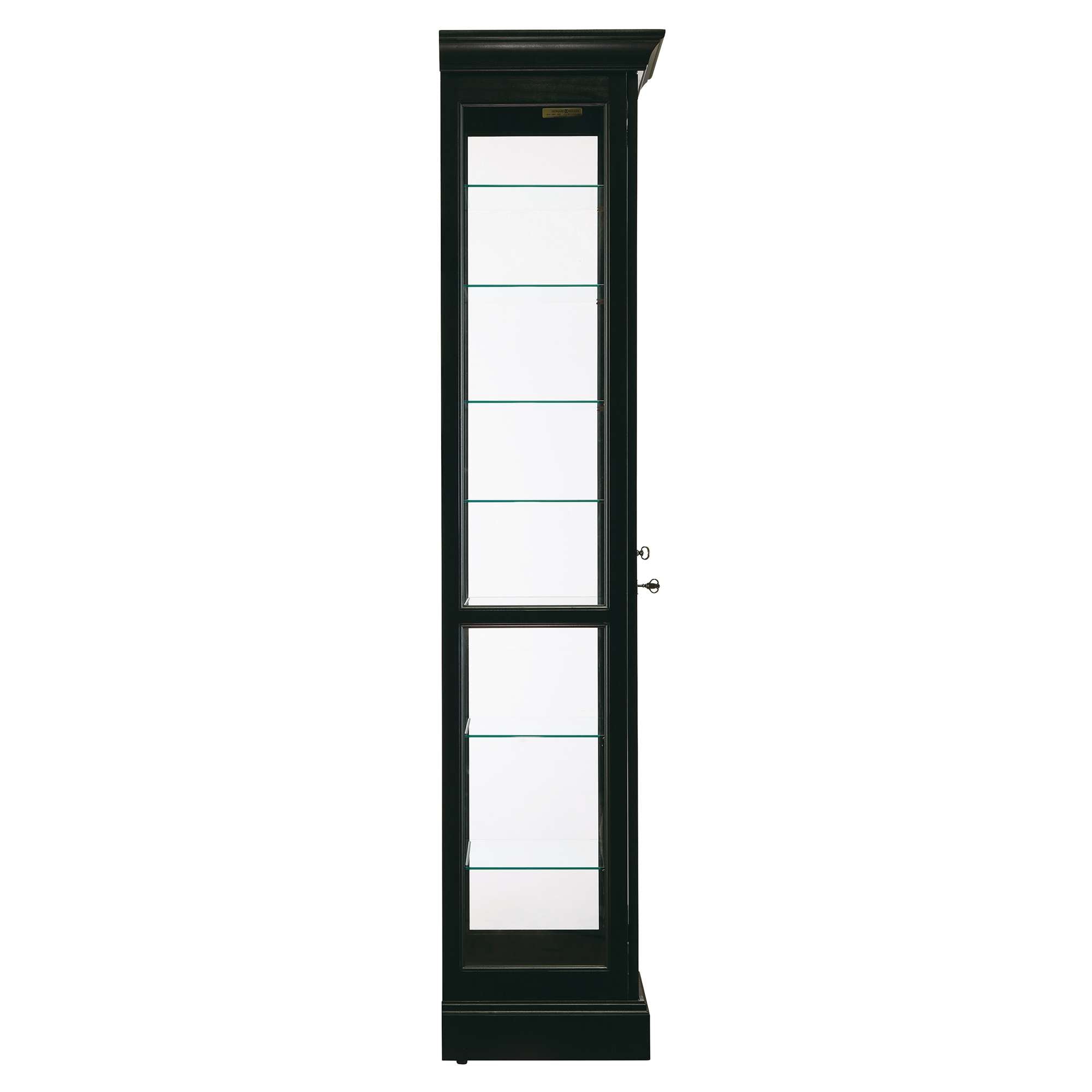 Careful Craftsmanship: This beautifullighted curio cabinet features a black satin finish on select hardwoods andveneers.