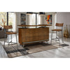 - Two sections with hanging wooden wine stemware racks hold up to 18 large wine glasses and provide storage for glassware, spirits, and other accessories.