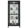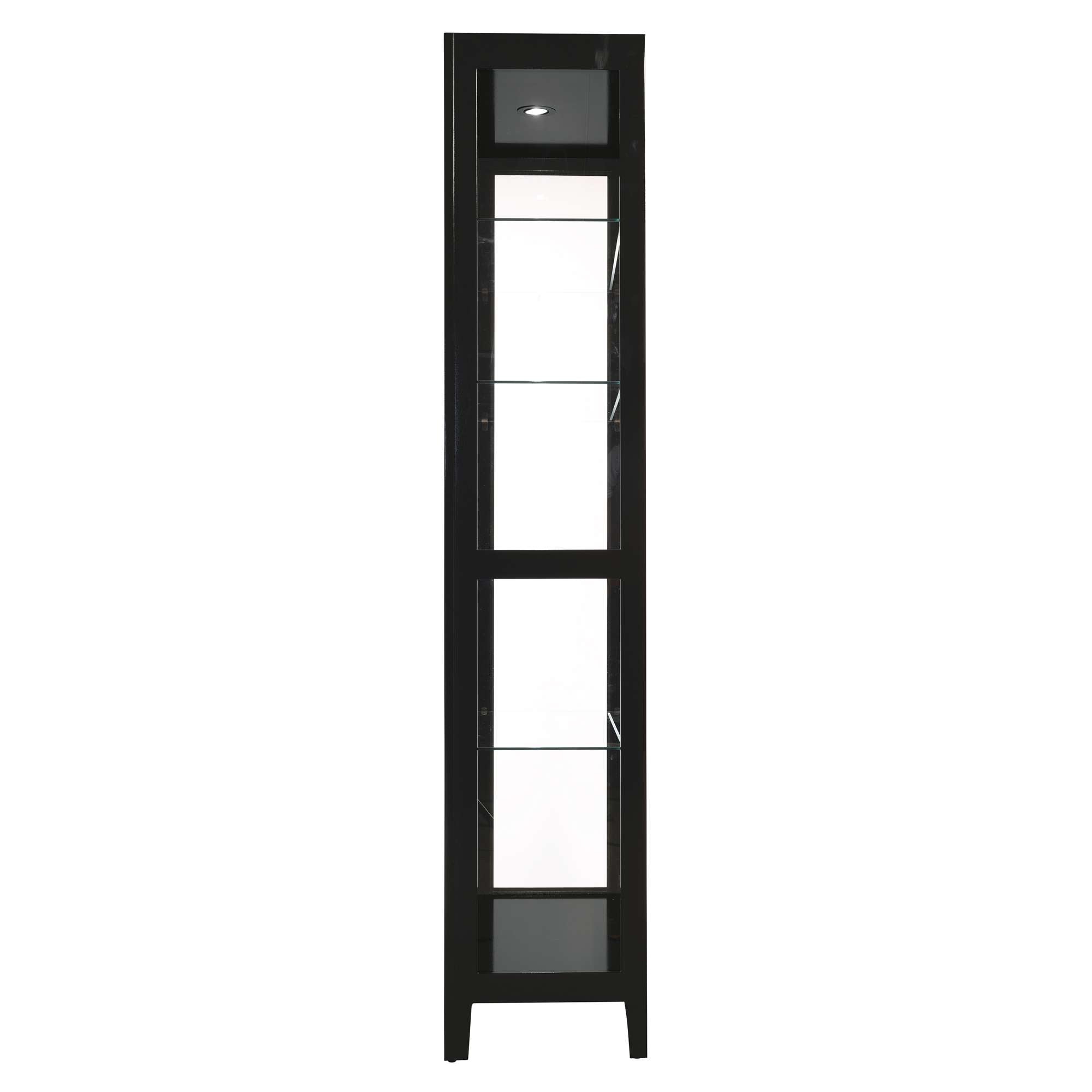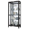 - Four adjustable glass shelves allow for five levels of display. Continuous holes for shelf adjustment.
