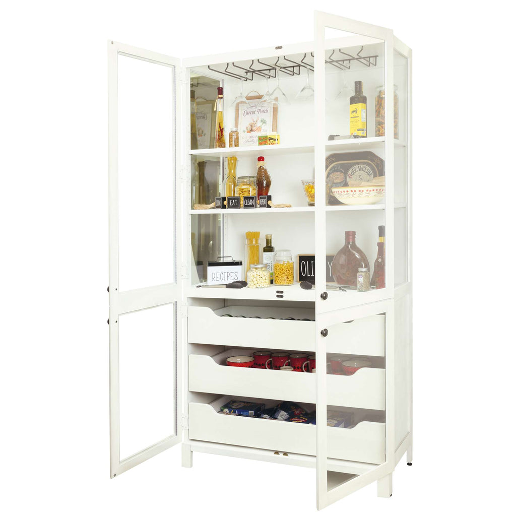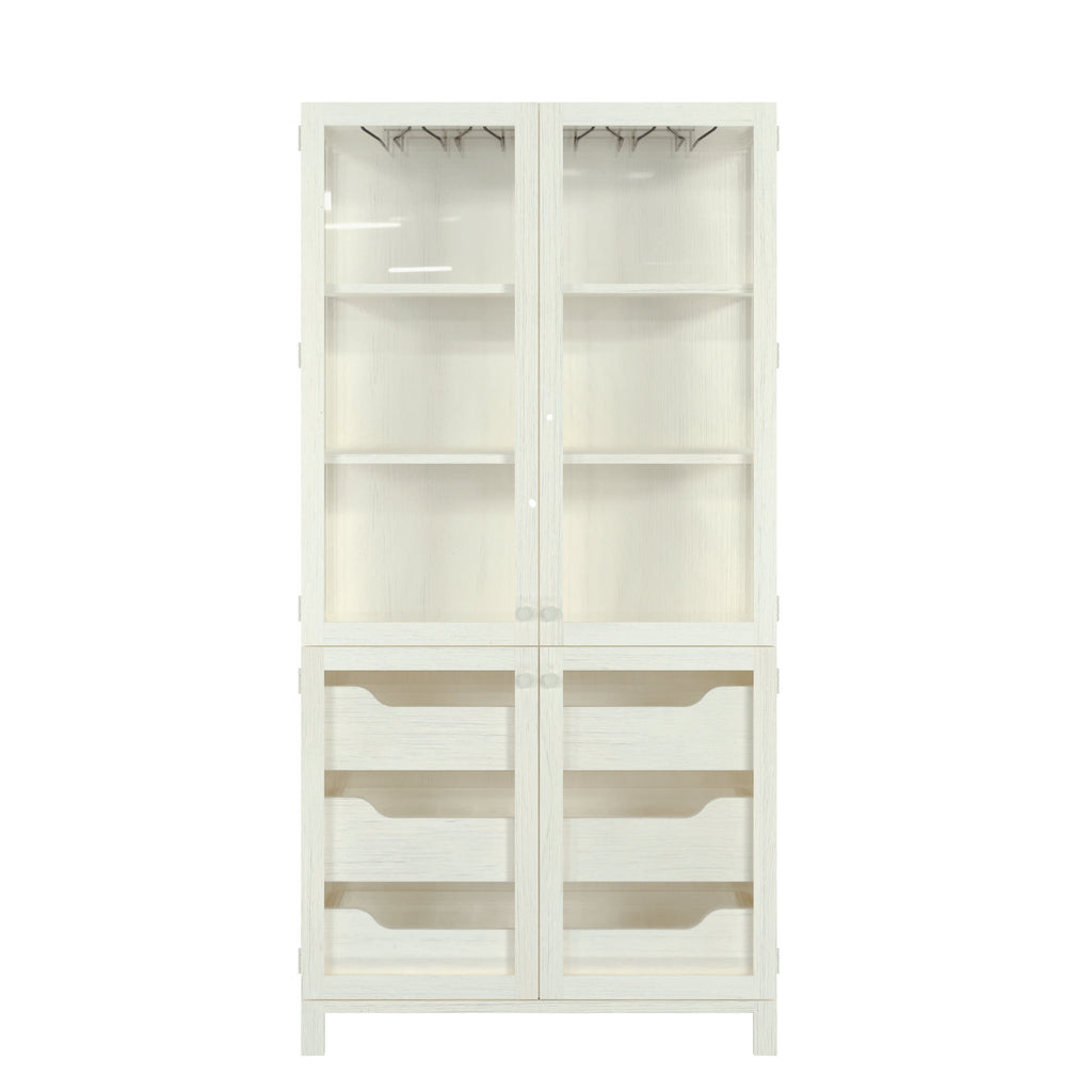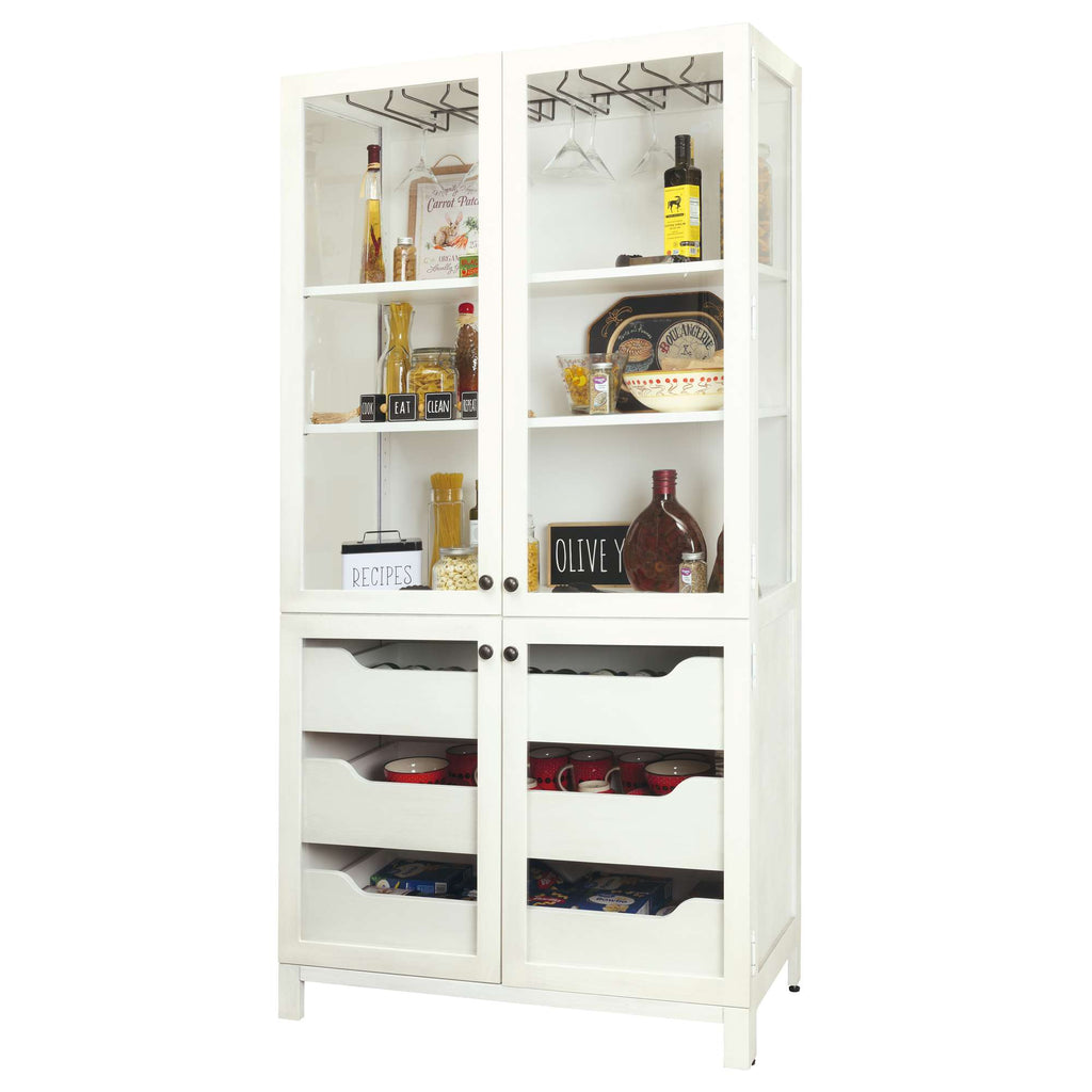 Transform this storage cabinet into the perfect place to house wine glasses and bottles with the Laurie II Storage Cabinet Wine Kit (680776KIT). This wine kit includes a hanging metal stemware rack with a dark nickel metal finish that can be secured to the underside of the top of the cabinet, keeping stemware handy and holding up to 18 large wine glasses. This kit also allows convenient storage for wine bottles in the cabinet drawers with three wine bottle supports that can hold up to 10 bottles of wine each for a total of 30 wine bottles. These wine bottle supports have an Aged White finish to blend seamlessly with the cabinet drawers.