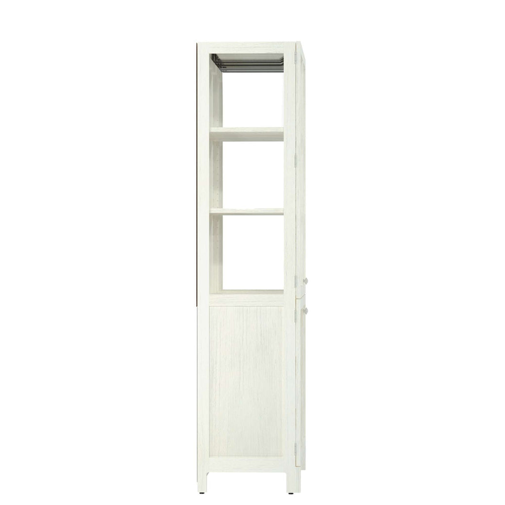 The cabinet features an Aged White finish on select hardwoods and veneers.