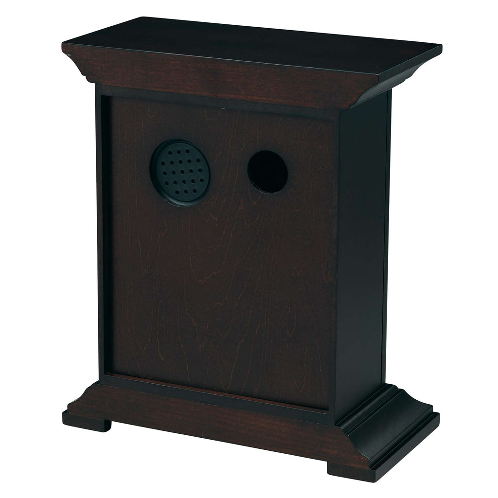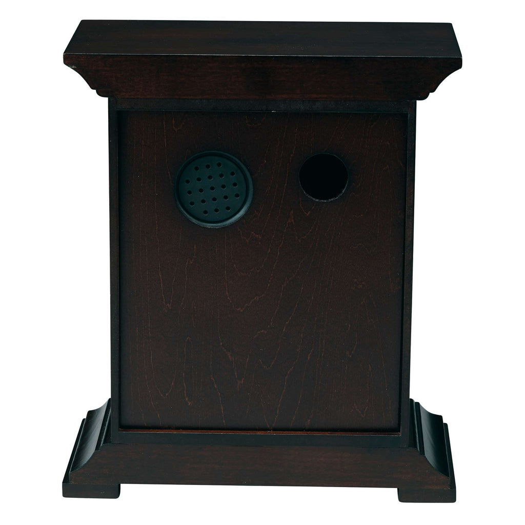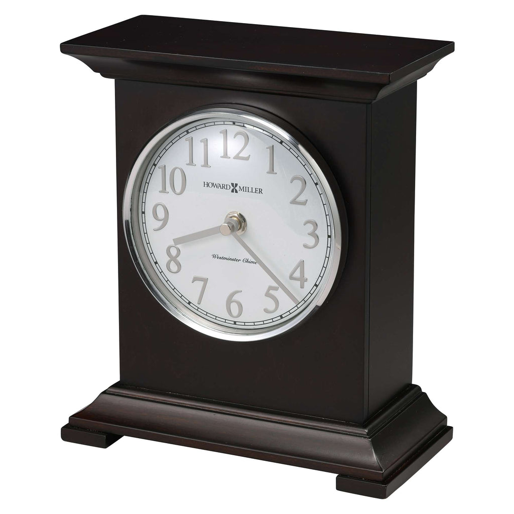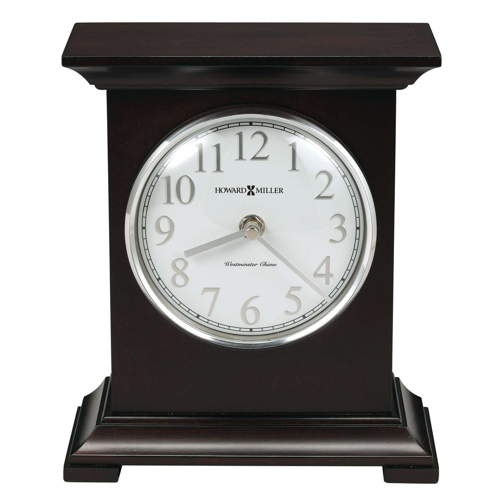 The clock features a Black Coffee finish on select hardwoods and veneers.