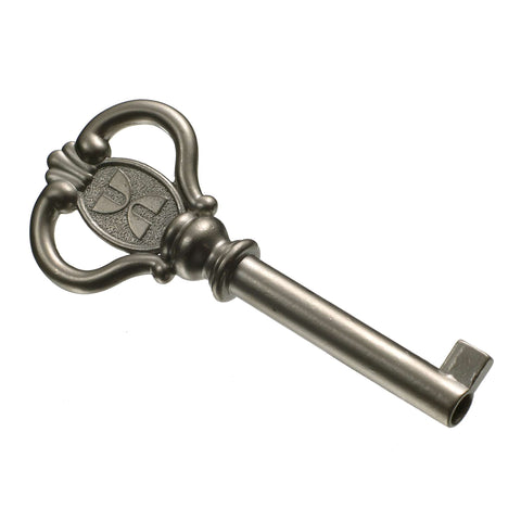 - Nickel finished door key with Howard Miller logo, fits most standard floor clock door locks.