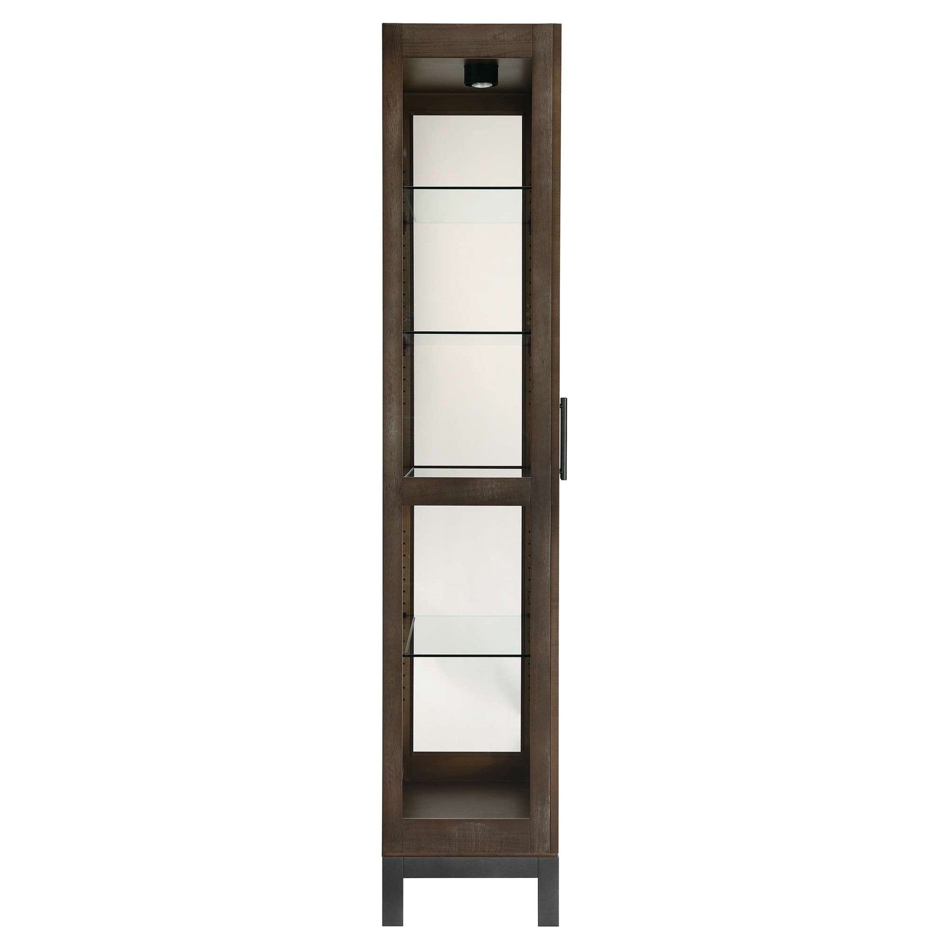 Select Hardwoods: This curio cabinet is crafted from select hardwoods and veneers, so it’s durable and stylish. The Aged Java finish is lightly distressed to resemble reclaimed wood and accentuated by the charcoal-finish base.