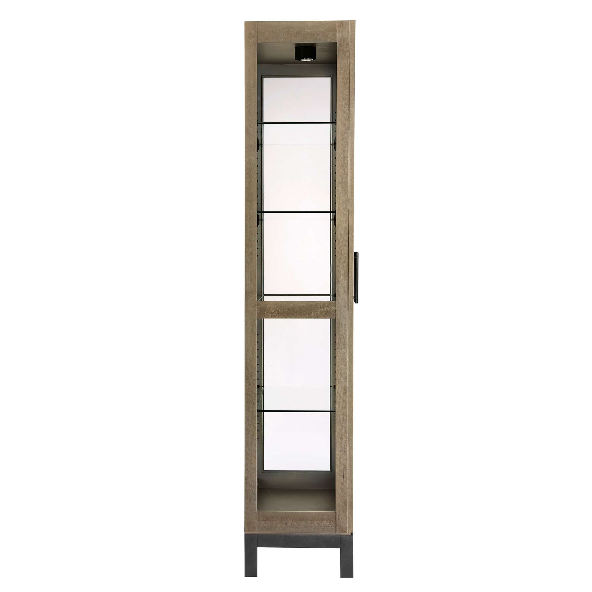 Careful Craftsmanship: This lighted curio cabinet features an aged gray finish on select hardwoods and veneers. The finish is wire brushed for a natural, reclaimed wood appearance, completing the careful craftsmanship of the entire piece.