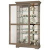 Careful Craftsmanship: This glass display cabinet features an aged gray finish on select hardwoods and veneers. The entire finish is wire brushed for a natural, reclaimed wood appearance, adding to the craftsmanship of the piece.