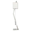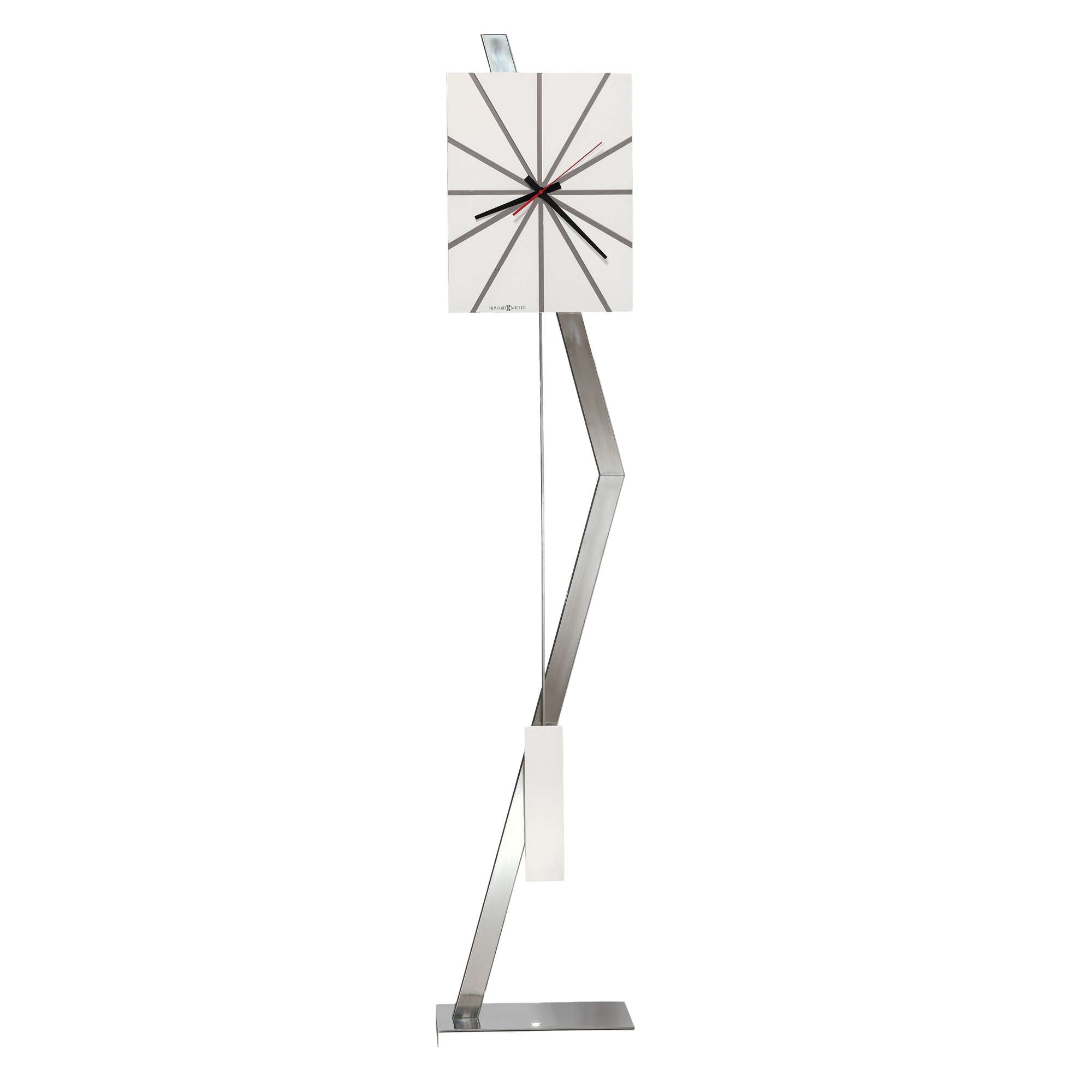 • This grandfather clock features a unique modern design with a rectangular dial finished in Gloss White and chrome-finished hour markers in the background in a sunbeam pattern.