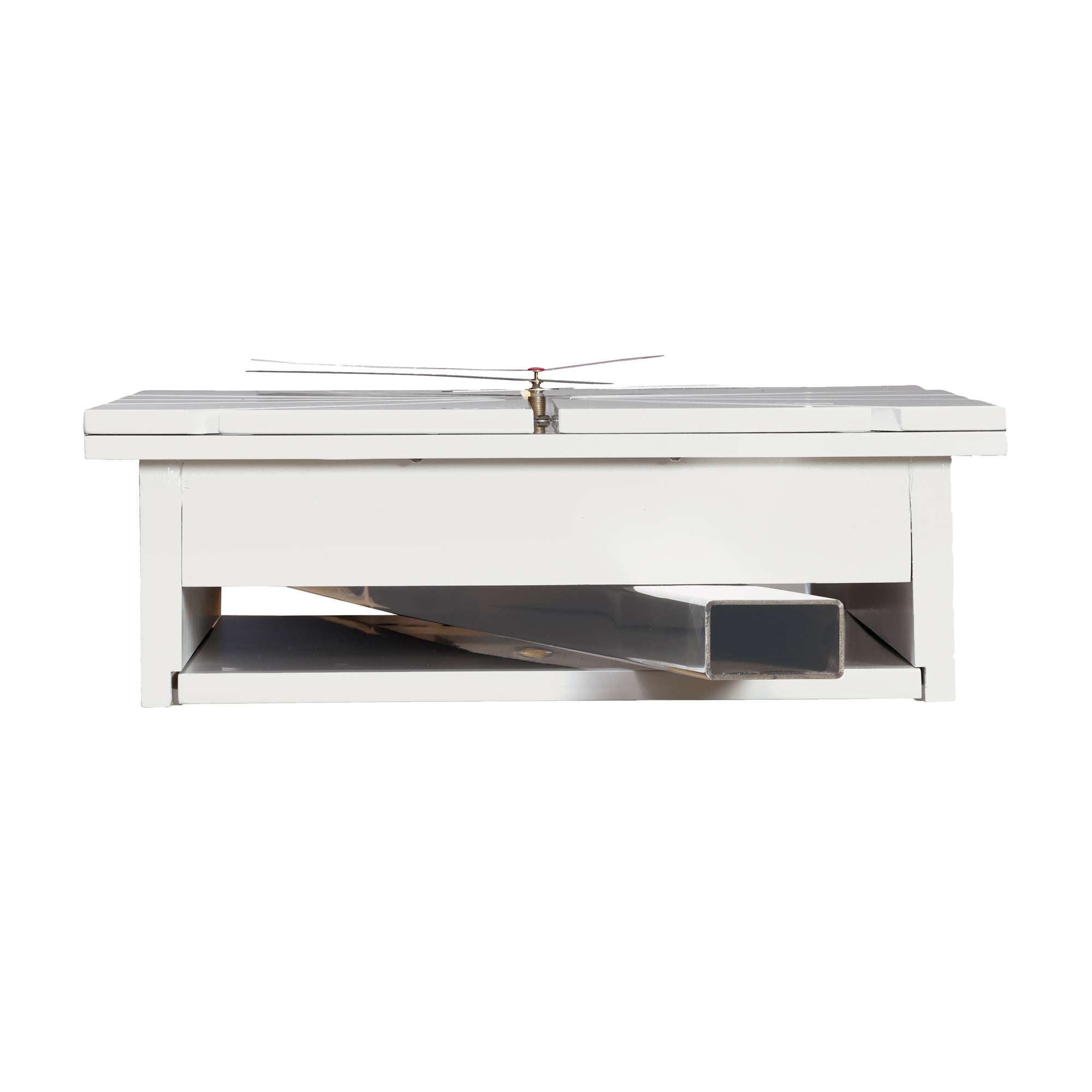 • The wooden base is finished in Gloss White and includes a polished stainless-steel metal top plate.